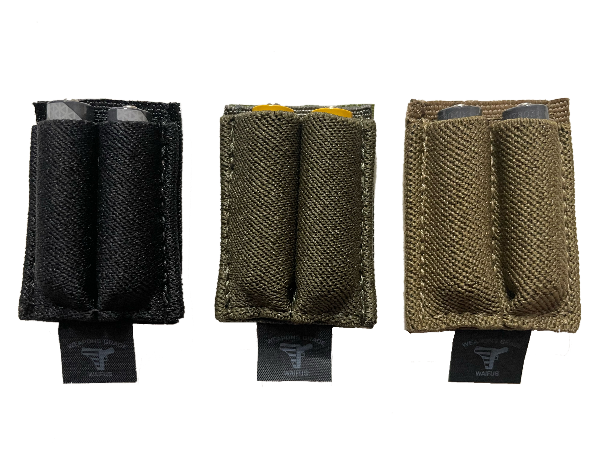 Elastic battery carriers are nothing new, but we’ve designed these to fit 2 AAAs in an extremely small footprint directly on your ear protection. This allows you to free up pouch or helmet counterweight space for AA/CR123 batteries for your more critical items, like NODs, lights and lasers.