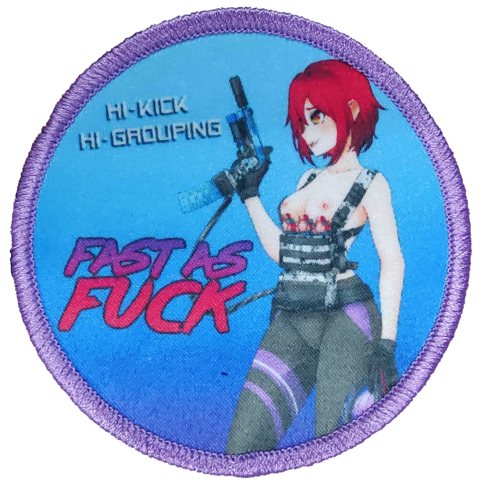 Mia is the team’s resident zoomer, and as such she likes to go fast as FUCK, boi. Armed with our buddy Malcolm’s custom HPA Hi-Capa and decked out in Abunai Supply’s ahegao chest rig, Mia is ready for placement on your gear to show everyone that you‘ve got the need… the need for speed.